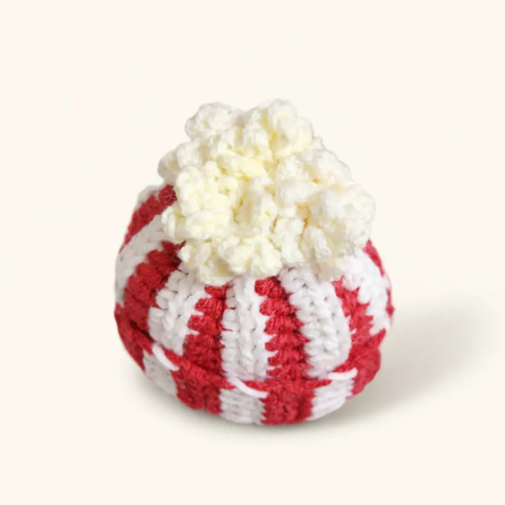 팝콘통 비니 위로 포슬포슬 팝콘이 올라가 있어요!